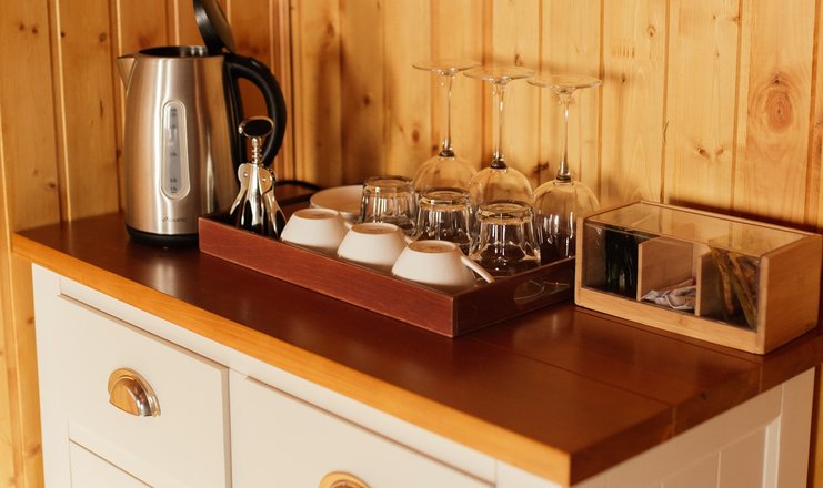 В номере: кровать двуспальная, кровать односпальная, прикроватные тумбочки, стол, стул, шкаф, холодильник, чайный набор посуды, электрочайник