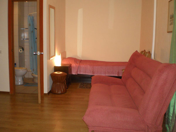 Оснащение: Душ, туалет, телевизор, холодильник, набор посуды, по запросу предоставляется детская кроватка.