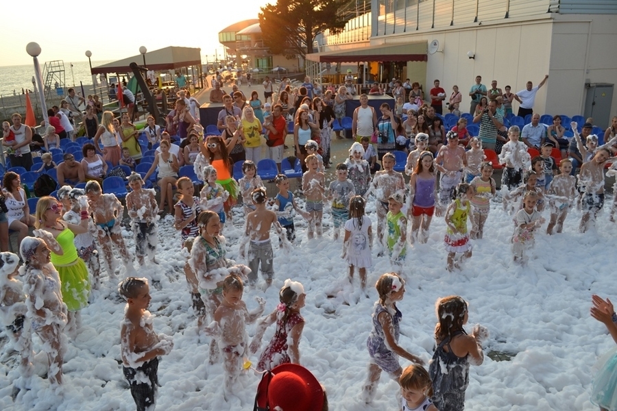 Для того чтобы получить полноценное удовольствие от отдыха в Сочи на море, туристам не обязательно покидать территорию комплекса «Спутник». Анимационная команда предлагает к услугам гостей комплекса в период с июня по сентябрь :